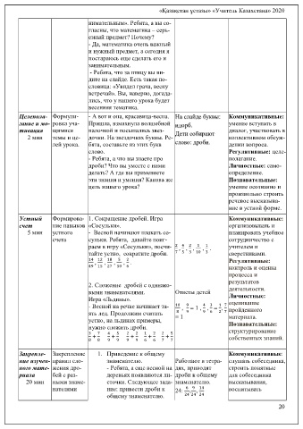 20 мин ными знаме- сточки. Следующее зада- знаменателю. высказывания,