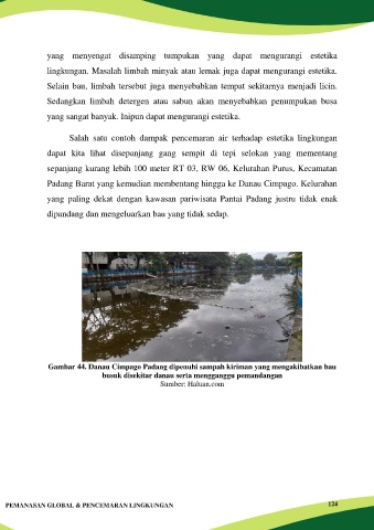 Gambar 44. Danau Cimpago Padang dipenuhi sampah kiriman yang mengakibatkan bau