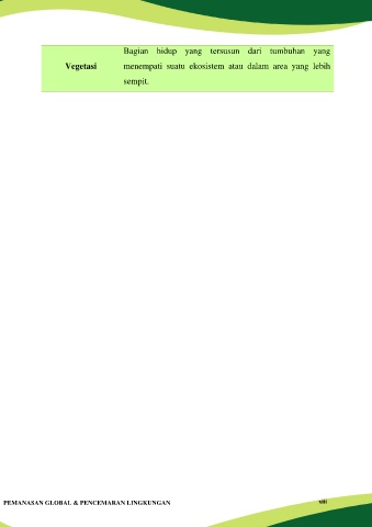 Bagian hidup yang tersusun dari tumbuhan yang Vegetasi menempati suatu ekosistem atau dalam area yang lebih sempit. xiii PEMANASAN GLOBAL & PENCEMARAN LINGKUNGAN