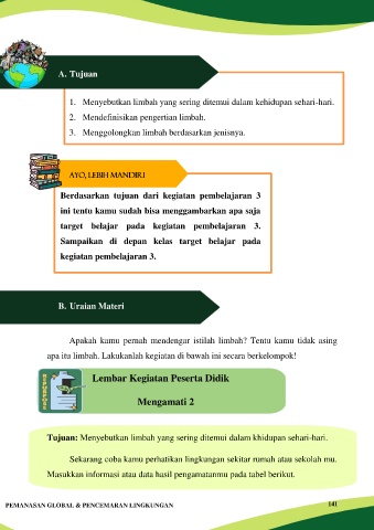 Tujuan: Menyebutkan limbah yang sering ditemui dalam khidupan sehari-hari.