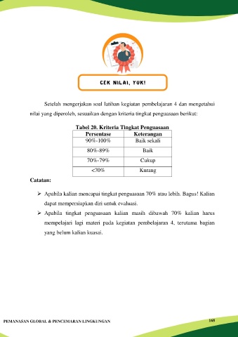 nilai yang diperoleh, sesuaikan dengan kriteria tingkat penguasaan berikut: