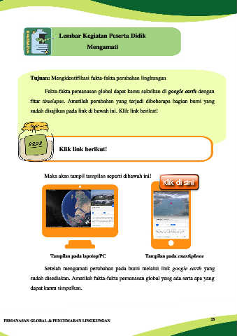 Setelah mengamati perubahan pada bumi melalui link google earth yang