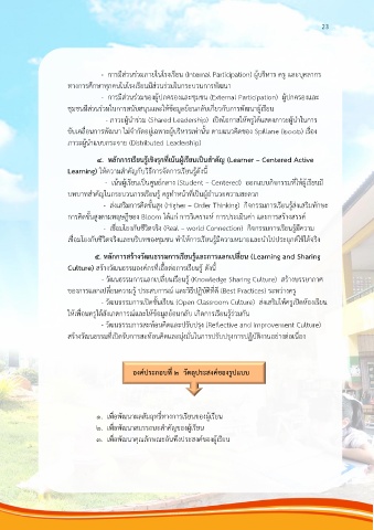 - ภาวะผู้นำร่วม (Shared Leadership)  เปิดโอกาสให้ครูได้แสดงภาวะผู้นำในการ