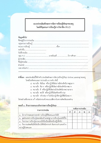 คำชี้แจง แบบประเมินนี้ใช้สำหรับประเมินทักษะการจัดการเรียนรู้เชิงรุก (Active Learning) ของครู