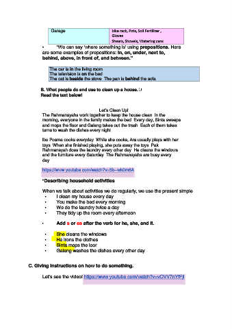 morning, everyone in the family makes the bed. Every day, Sinta sweeps