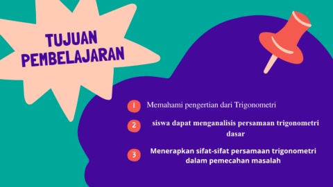 Memahami pengertian dari Trigonometri siswa dapat menganalisis persamaan trigonometri dasar Menerapkan sifat-sifat persamaan trigonometri dalam pemecahan masalah