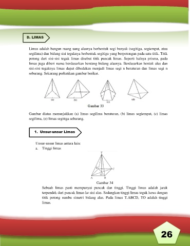 Limas adalah bangun ruang uang alasnya berbentuk segi banyak (segitiga, segiempat, atau