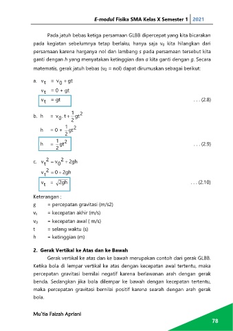 Pada jatuh bebas ketiga persamaan GLBB dipercepat yang kita bicarakan