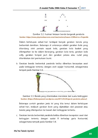 Gambar 3.2. Ilustrasi lintasan benda bergerak parabola