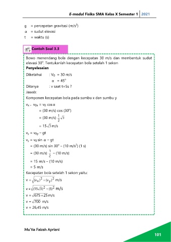 Komponen kecepatan bola pada sumbu x dan sumbu y