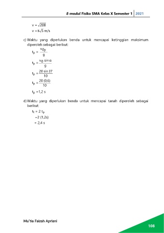 d) Waktu yang diperlukan benda untuk mencapai tanah diperoleh sebagai