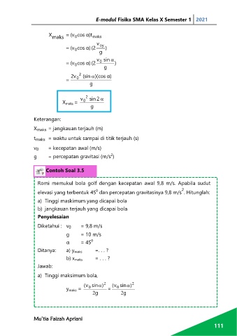 Romi memukul bola golf dengan kecepatan awal 9,8 m/s. Apabila sudut