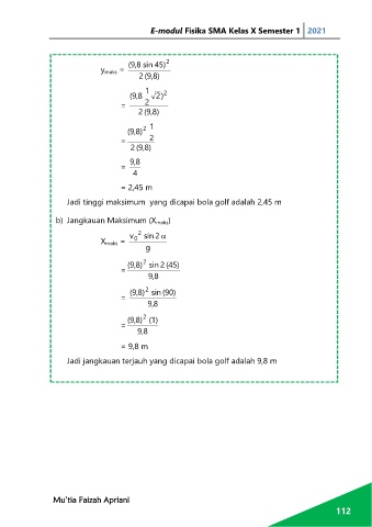 Jadi tinggi maksimum yang dicapai bola golf adalah 2,45 m