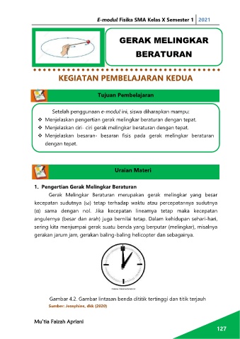 Menjelaskan ciri- ciri gerak melingkar beraturan dengan tepat.