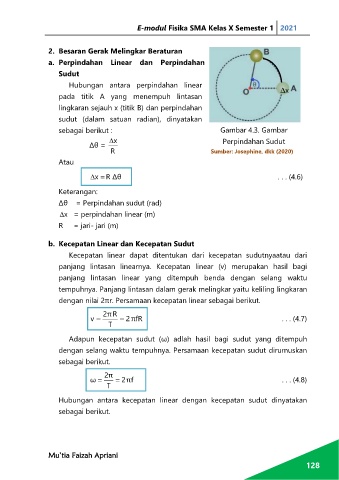 tempuhnya. Panjang lintasan dalam gerak melingkar yaitu keliling lingkaran
