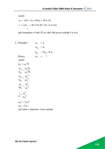 jadi kecepatan di titik 20 cm dari titik poros adalah 3 π m/s.