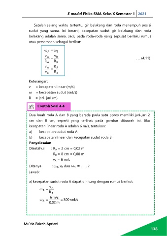 sudut yang sama. Ini berarti, kecepatan sudut gir belakang dan roda