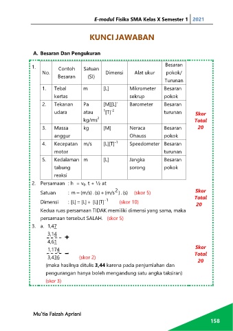 Dimensi : [L] [L] [L] [T] (skor 10) Total