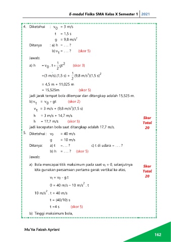 a) Bola mencapai titik maksimum pada saat v t = 0, selanjutnya Skor