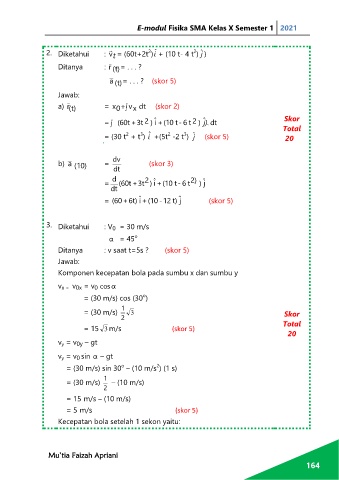 = (30 t + t ) i +(5t -2 t ) j (skor 5) 20