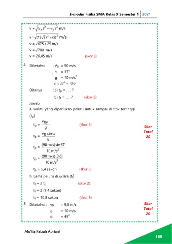 5. Diketahui : v 0 = 9,8 m/s Skor