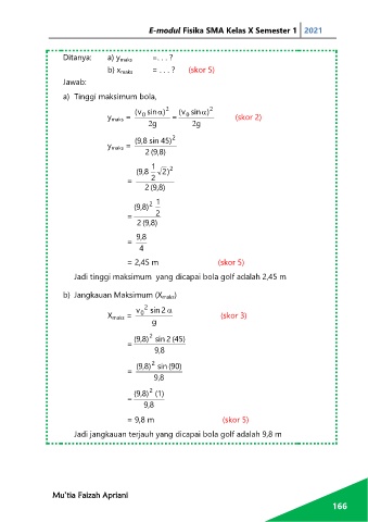Jadi jangkauan terjauh yang dicapai bola golf adalah 9,8 m