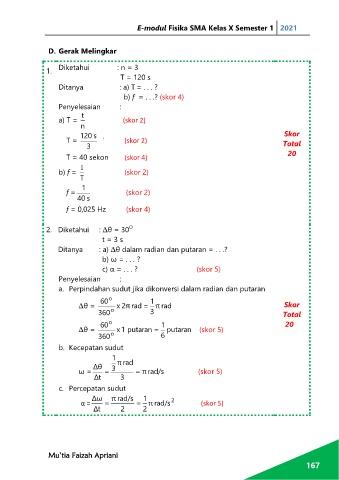 Ditanya : a) ∆θ dalam radian dan putaran = . . .?
