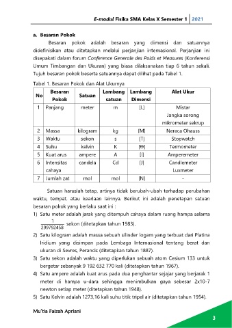 Tabel 1. Besaran Pokok dan Alat Ukurnya