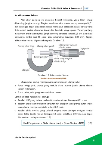 mikrometer sekrup digambarkan pada Gambar 1.2.