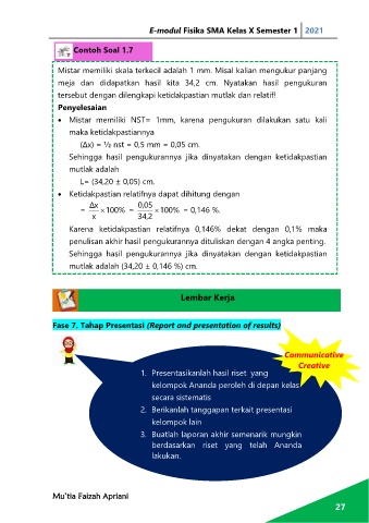 meja dan didapatkan hasil kita 34,2 cm. Nyatakan hasil pengukuran