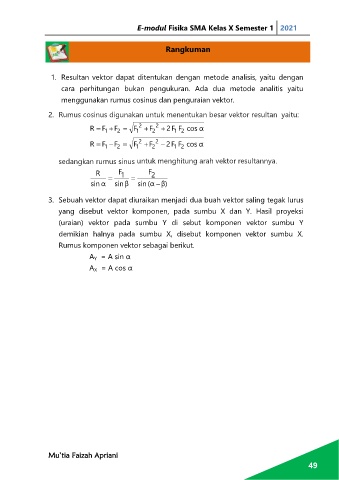 1. Resultan vektor dapat ditentukan dengan metode analisis, yaitu dengan