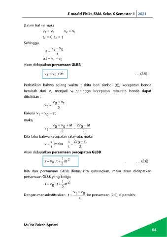 Bila dua persamaan GLBB diatas kita gabungkan, maka akan didapatkan