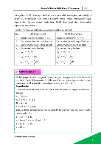 Tabel 4. Perbedaan GLBB dipercepat dan GLBB diperlambat