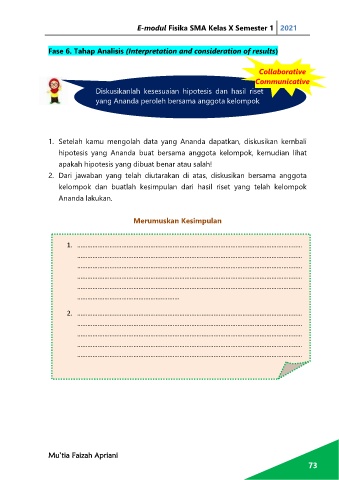 hipotesis yang Ananda buat bersama anggota kelompok, kemudian lihat