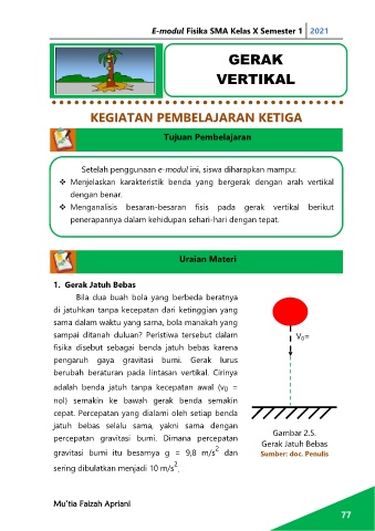 percepatan gravitasi bumi. Dimana percepatan Gerak Jatuh Bebas
