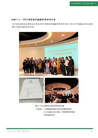 生死與健康心理諮商系碩士班 附錄十二、2023 殯葬與評鑑國際學術研討會 同中華民國設施全聯會長官參與 2023 殯葬與評鑑國際學術研討會,(於台中市福龍生命紀念園) 暨生命教育場域參訪活動。 圖 13 -2023 殯葬與評鑑國際學術研討會 主辦單位:仁德醫護管理專科學校生命關懷事業科 台中市福龍生命紀念園、中華殯葬教育學會 ※研討會論文集 呂玟慧 115 年度碩士班甄試申請 30