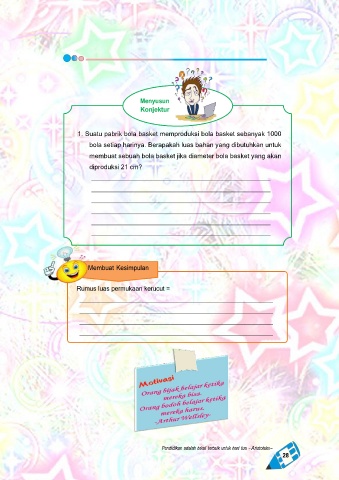 bola setiap harinya. Berapakah luas bahan yang dibutuhkan untuk