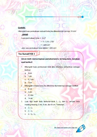 Jadi, luas permukaan bola adalah 1.256 dm .