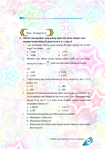 1. Luas permukaan tabung yang panjang diameter alasnya 42 cm dan