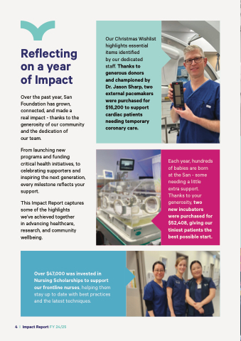 Each year, hundreds of babies are born at the San - some needing a little extra support. Thanks to your generosity, two new incubators were purchased for $52,408, giving our tiniest patients the best possible start.