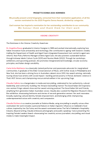 We proudly present a brief biography, extracted from their nomination application, of all the women nominated for the 2025 Progetto Donna Awards, divided by categories.
