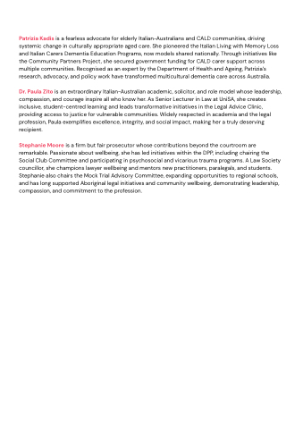Dr. Paula Zito is an extraordinary Italian-Australian academic, solicitor, and role model whose leadership, compassion, and courage inspire all who know her. As Senior Lecturer in Law at UniSA, she creates inclusive, student-centred learning and leads transformative initiatives in the Legal Advice Clinic, providing access to justice for vulnerable communities. Widely respected in academia and the legal profession, Paula exemplifies excellence, integrity, and social impact, making her a truly deserving recipient.
