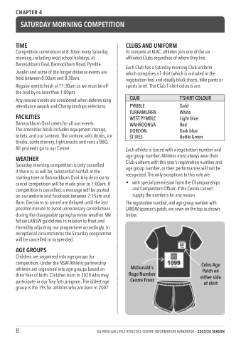 8 KU-RING-GAI LITTLE ATHLETICS CENTRE INFORMATION HANDBOOK – 2025/26 SEASON