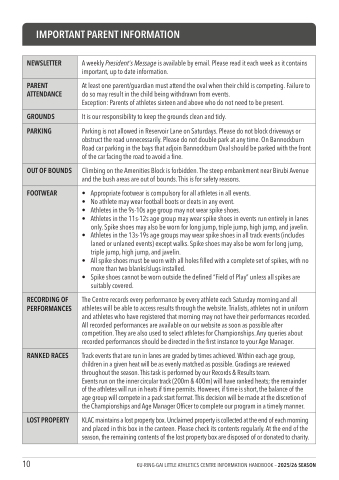 10 KU-RING-GAI LITTLE ATHLETICS CENTRE INFORMATION HANDBOOK – 2025/26 SEASON