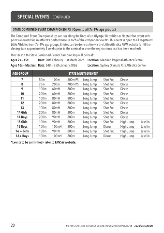 STATE COMBINED-EVENT CHAMPIONSHIPS (Open to all 7s-19s age groups)