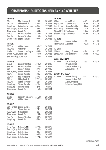 CHAMPIONSHIPS RECORDS HELD BY KLAC ATHLETES