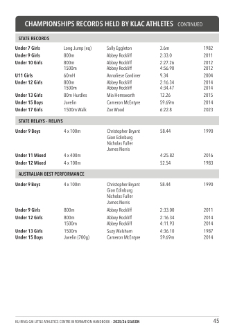 CHAMPIONSHIPS RECORDS HELD BY KLAC ATHLETES