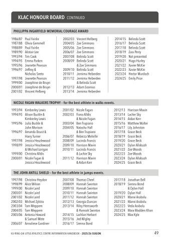 KLAC HONOUR BOARD CONTINUED PHILLIPPA INGARFIELD MEMORIAL COURAGE AWARD