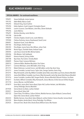 KLAC HONOUR BOARD CONTINUED SPECIAL AWARDS – for continued excellence.