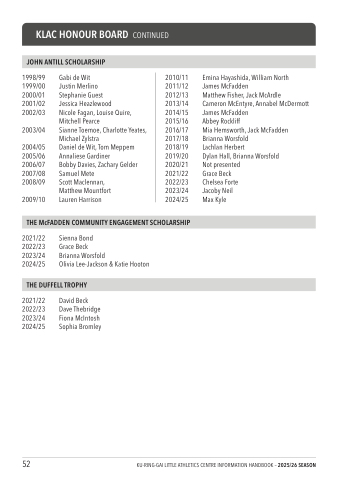 KLAC HONOUR BOARD CONTINUED JOHN ANTILL SCHOLARSHIP